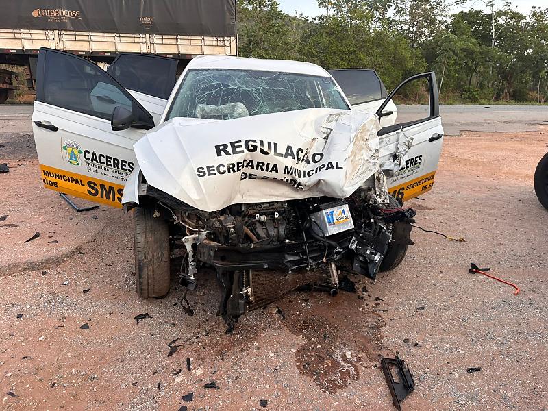 Um veículo oficial, um VW Polo Track da Regulação da Secretaria Municipal de Saúde de Cáceres (SMS), se envolveu em um acidente na BR-070 no início da manhã desta segunda-feira (10). O carro transportava pacientes para tratamento especializado em Cuiabá.